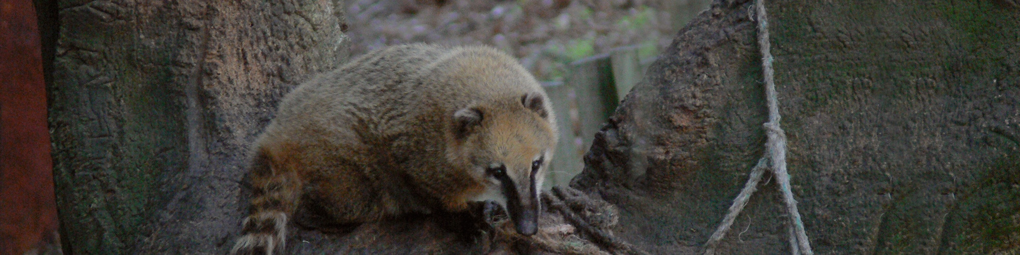O coati-de-cauda-anelada é uma espécie que habita predominantemente as selvas sul-americanas e a parte meridional da América Central.